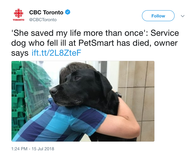 Even more appalling, Dixon was never informed about Aspens falling health, seeing that the PetSmart staff failed to even see Aspens condition worsen