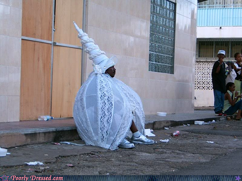 I mean, certainly there's some sort of context that makes wearing a lace globe of fabric reasonable, but I certainly don't know it.