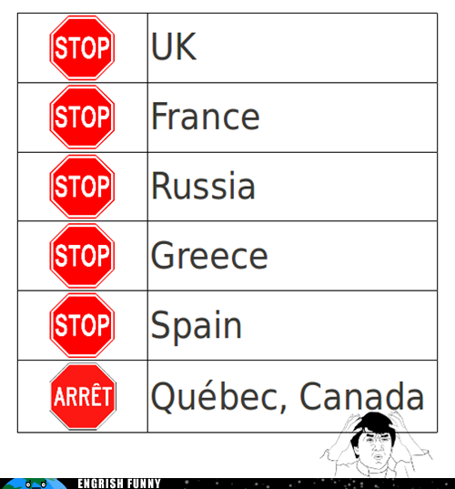 Even Mama France has stop signs that say "Stop!" Seriously!