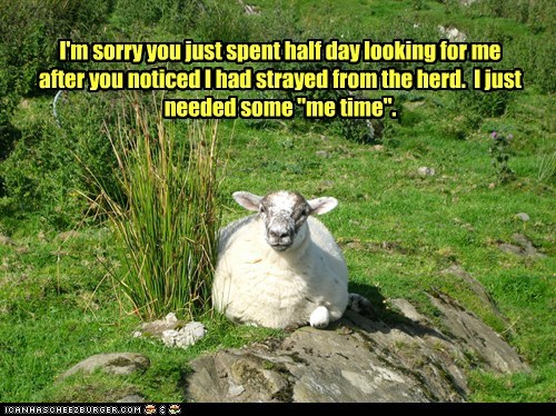 I'm sorry you just spent half day looking for me after you noticed I had strayed from the herd. I just needed some "me time".