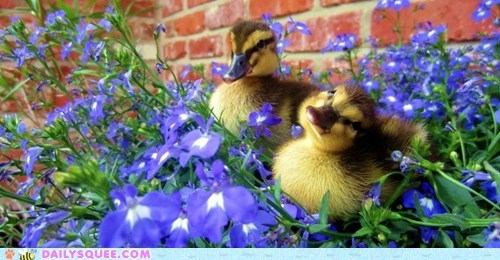 I think we should all take a lesson from these ducklings, and learn to slow down and smell the flowers! Summer is here, let's all remember to enjoy it!