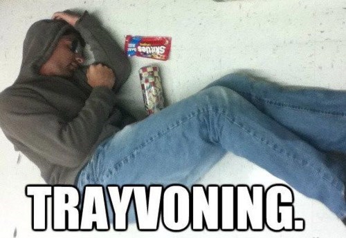 Trayvoning is like Tebowing, except totally the opposite -- white (and apparently, black) kids pose as a gunshot victim, wearing a hoodie, and holding Skittles and an iced tea, which is what Martin had on him when George Zimmerman shot him to death in February.