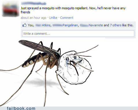 The repellent is slow-acting but effective; in five days the mosquito dies of loneliness.