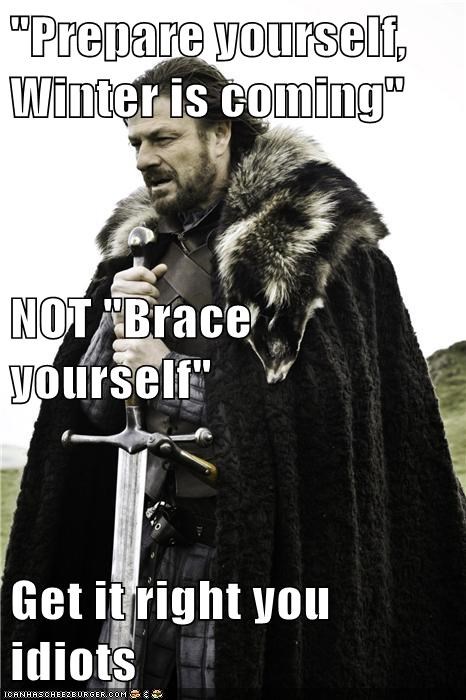 "Prepare yourself, Winter is coming" NOT "Brace yourself" Get it right you idiots