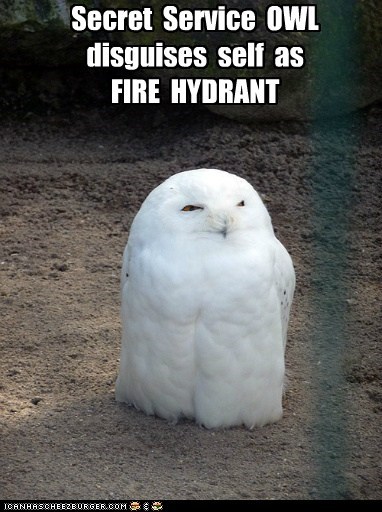 Secret Service Owl disguises self as fire hydrant.