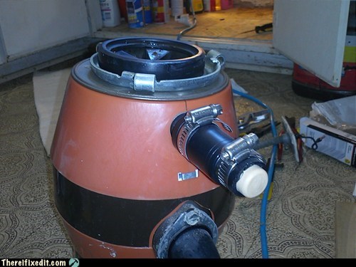 "Last year the drainhose for my ancient dishwasher broke off my equally ancient disposer. Surprisingly, there's no aftermarket plug for these, so I made one out of an adapter and a wine cork."