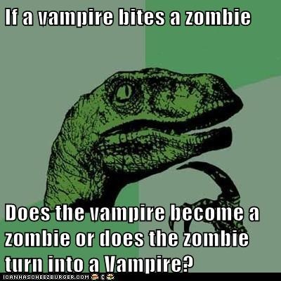 If a vampire bites a zombie Does the vampire become a zombie or does the zombie turn into a Vampire?