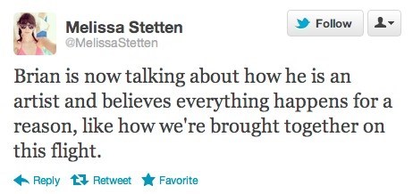 When married actor Brian Presley attempted a little adultery this morning on his cross-country flight, he had no idea he was hitting on model Melissa Stetten, whose Twitter feed -- with 13,000+ followers -- broadcast in real time his increasingly pitiful, hypocritical attempt to renege on his vows. Here's the recap in its entirety.