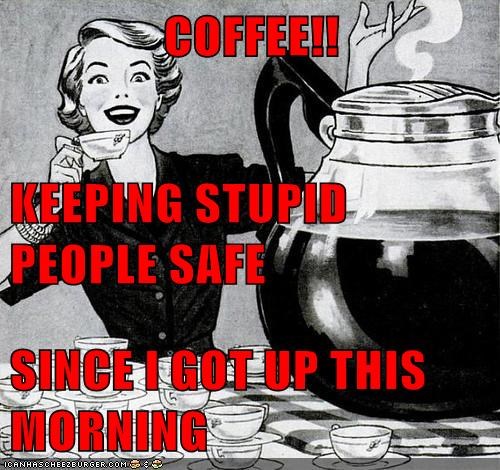 COFFEE!! KEEPING STUPID PEOPLE SAFE SINCE I GOT UP THIS MORNING.