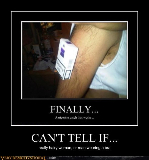 CAN'T TELL IF... really hairy woman, or man wearing a bra