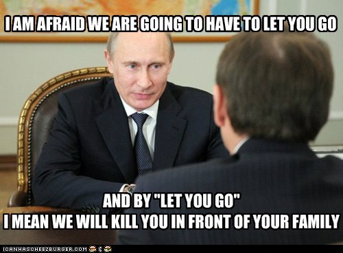 I AM AFRAID WE ARE GOING TO HAVE TO LET YOU GO AND BY "LET YOU GO" I MEAN WE WILL KILL YOU IN FRONT OF YOUR FAMILY