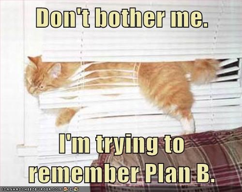Don't bother me. I'm trying to remember Plan B.