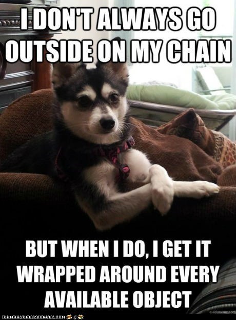 I DON'T ALWAYS GO OUTSIDE ON MY CHAIN BUT WHEN I DO, I GET IT WRAPPED AROUND EVERY AVAILABLE OBJECT