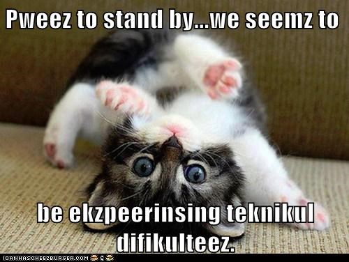 Pweez to stand by...we seemz to be ekzpeerinsing teknikul difikulteez.
