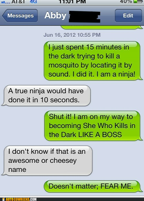 A real ninja doesn't need to tell people to fear them!