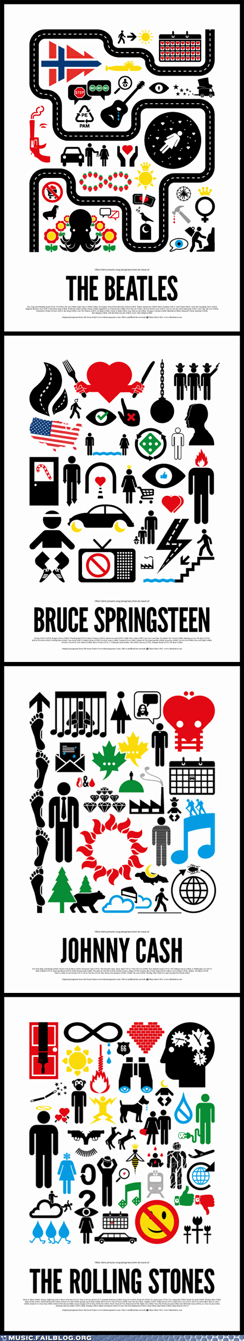 Graphic designer Viktor Hertz created eight rock posters, using pictograms to represent the best of their bodies of work. Name them all!