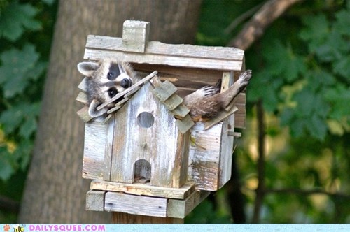 This is a Raccoon house you built, right? RIGHT? ...Bird house you say? Um, I guess I could be a bird.