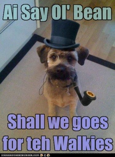 Ai say ol' bean, shall we goes for teh walkies?