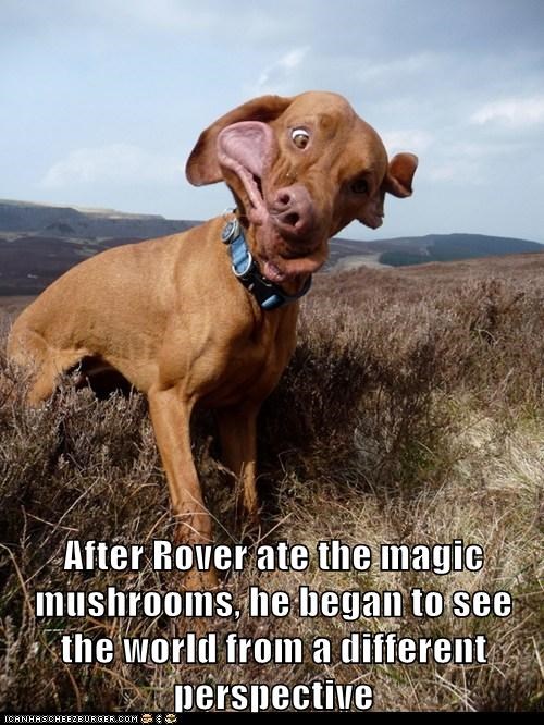 After Rover ate the magic mushrooms, he began to see the world from a different perspective.