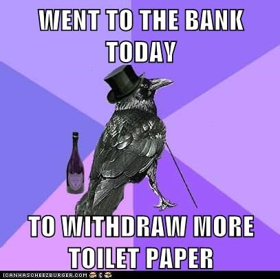 WENT TO THE BANK TODAY TO WITHDRAW MORE TOILET PAPER