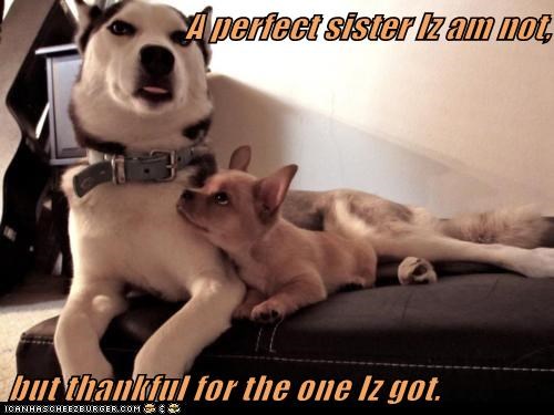 A perfect sister Iz am not, but thankful for the one Iz got. ai hab a bery speshul seester...