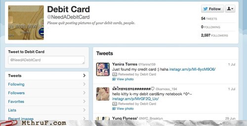 New Single-Serving Twitter Account Attempts to Publicly Shame People Who Post Their Debit Cards Online