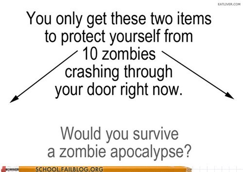 My only weapons are my cell phone and a stack of post-its. DIE ZOMBIES.