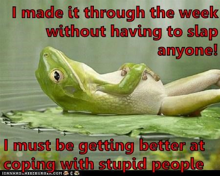 I made it through the week without having to slap anyone! I must be getting better at coping with stupid people.