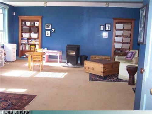 We're gonna need a much more spectacular wood stove to make this wall not look abandoned. Those built-ins look like they are longing for each other.