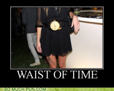 ... you get it? Because her belt his hiked up, or whatever. Teehee. I'm clever. Except OH WAIT THAT CLOCK ISN'T POINTING TO NOON CRAP. - Matty Malaprop