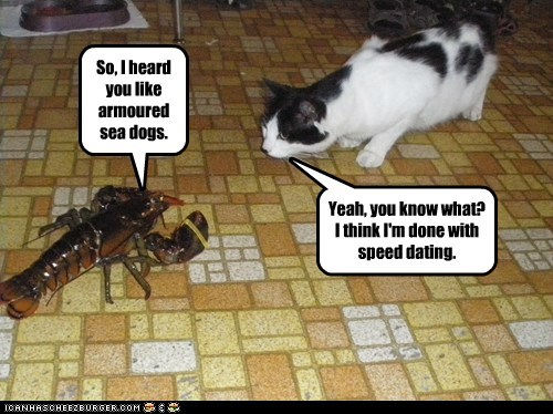 So, I heard you like armored sea dogs. Yeah, you know what? I think I'm done with speed dating.