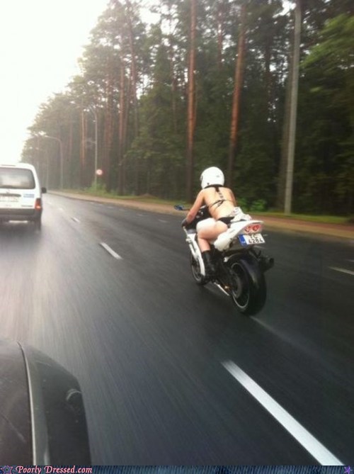 On the bright side, it's a smooth transition from the beach into the water in that getup.