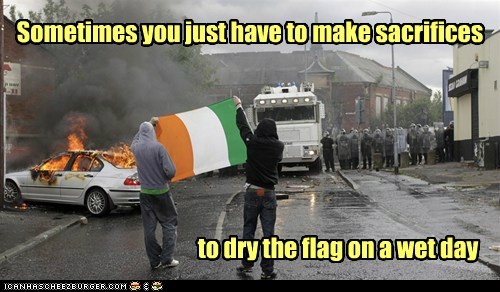 Sometimes you just have to make sacrifices to dry the flag on a wet day