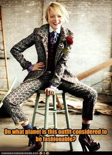 On what planet is this outfit considered to be fashionable?