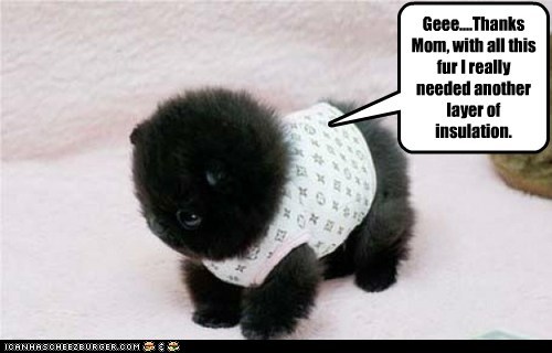 Geee....Thanks Mom, with all this fur I really needed another layer of insulation.