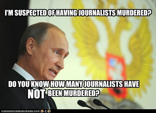 I'M SUSPECTED OF HAVING JOURNALISTS MURDERED? DO YOU KNOW HOW MANY JOURNALISTS HAVE NOT BEEN MURDERED? (Vladimir Putin)