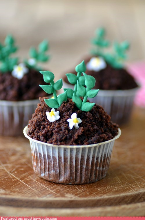 The real genius of these little cuties is that there are wee marzipan potatoes studding the chocolate cake soil! The baker made these for her father who is a potato farmer! I might die of preciousness!