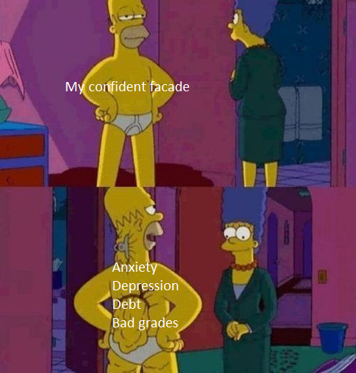 We all have flaws we'd rather not present to people. Some of us suffer from depression, some of us have weird kinks. Society rarely focuses on the real problems, and if invading aliens really learned about our truths they'd probably destroy the planet as a favor. These are the themes of this clever meme featuring Homer Simpson proudly showing off his tighty whitey clad frame. He looks fit but, but alas, it's all a facade. His back fat is tighty clamped so that Marge can't see it. While we appreciate this trending meme, Redditors have been making memes to point out the fact we've basically seen it before. Where the original memes at?