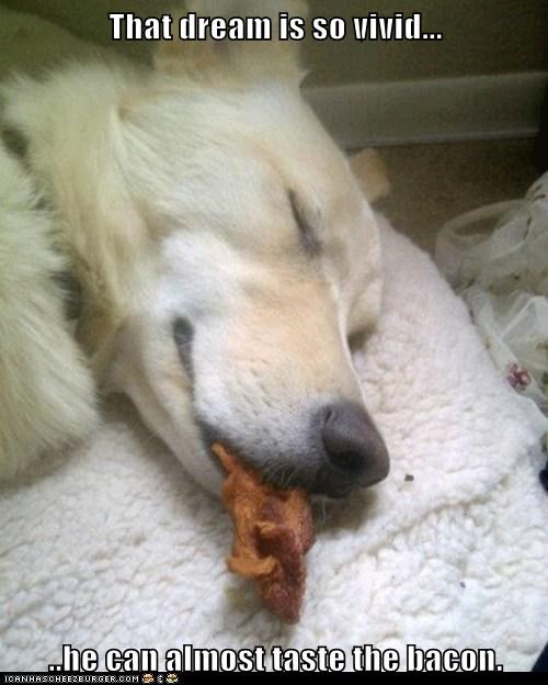 That dream is so vivid... he can almost taste the bacon.