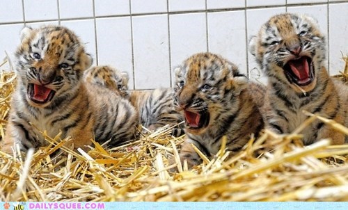 Oh great, who woke up the Tiger cubs and ruined their nap time?!? Now they're going to be grumpy all day!