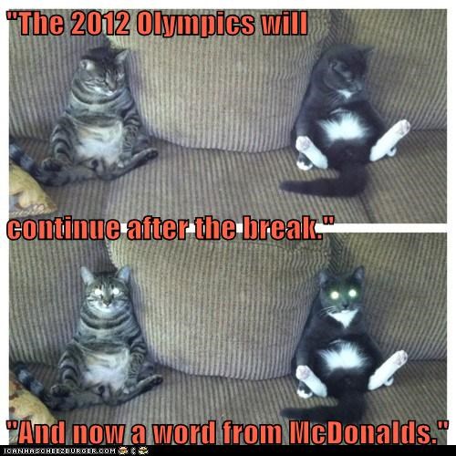 "The 2012 Olympics will continue after the break." "And now a word from McDonalds."