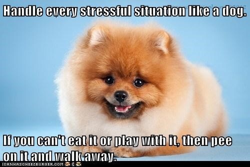 Handle every stressful situation like a dog. If you can't eat it or play with it, then pee on it and walk away.