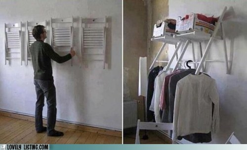 Who needs furniture on the floor, cluttering up the room when you can hang it from the walls and hang other stuff from it!