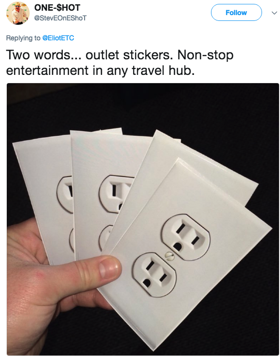 Master Troll Posts Power Outlet Stickers Across Airport To Trigger People Hard