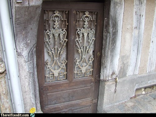 Spotted in Auxerre, France. When you can't find your keys, a lock around the doorframe will do just fine!