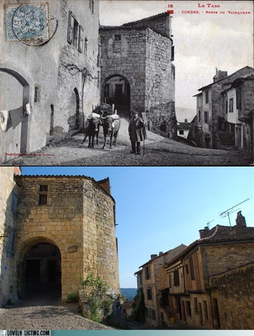 Jerceto says: "The house on the right with the TV aerial was recently bought by some family friends. Some locals gave them this old postcard, believed to be from 1906. The house itself was originally built in 1327 in the medieval town of Courdes sur Ciel."