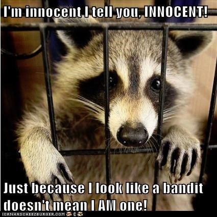 I'm innocent I tell you, INNOCENT! Just because I look like a bandit doesn't mean I AM one!