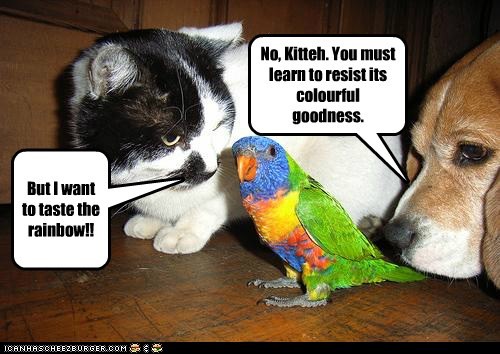 No, Kitteh. You must learn to resist its colorful goodness.