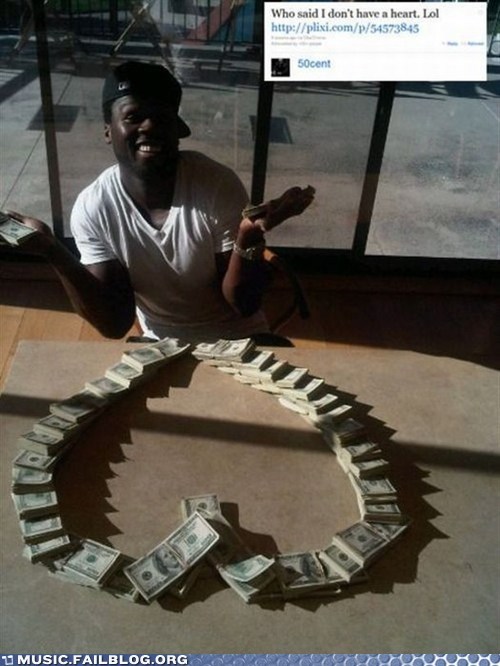 50 Cent's facial expression and hand gestures is just begging for a "Why can't I hold all these monies?" caption.