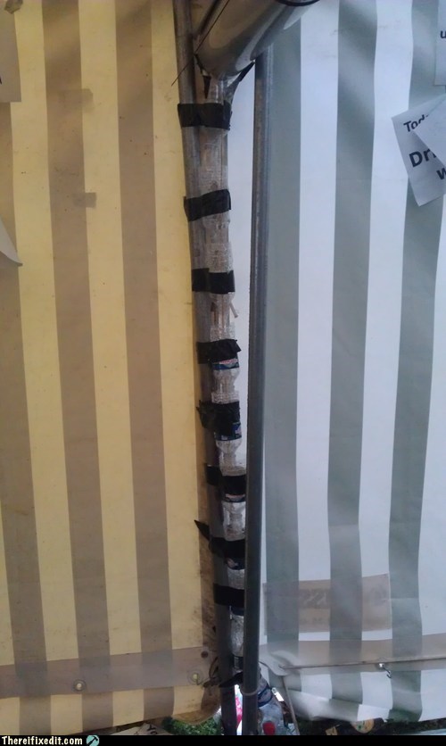 "We fixed the rain drain of our tent using small water bottles."